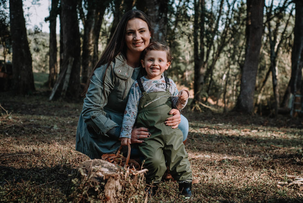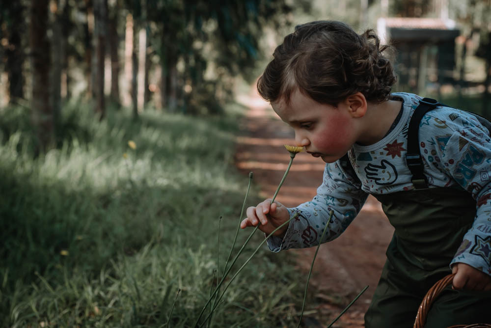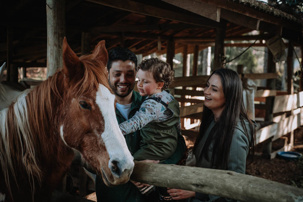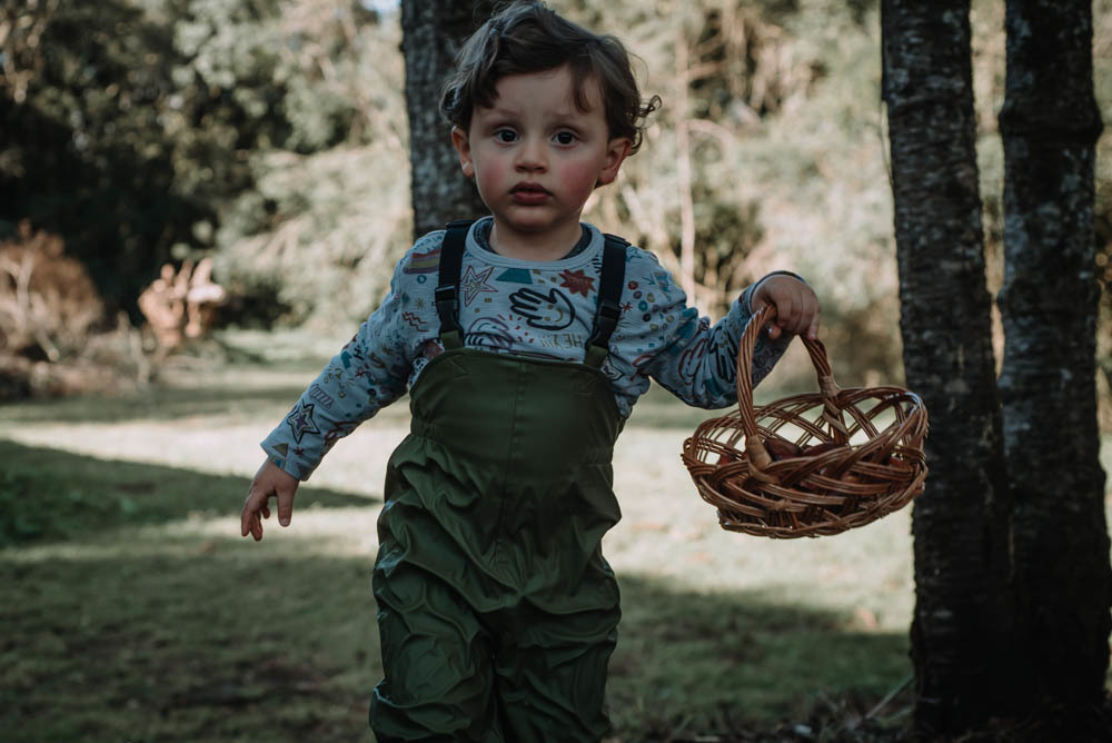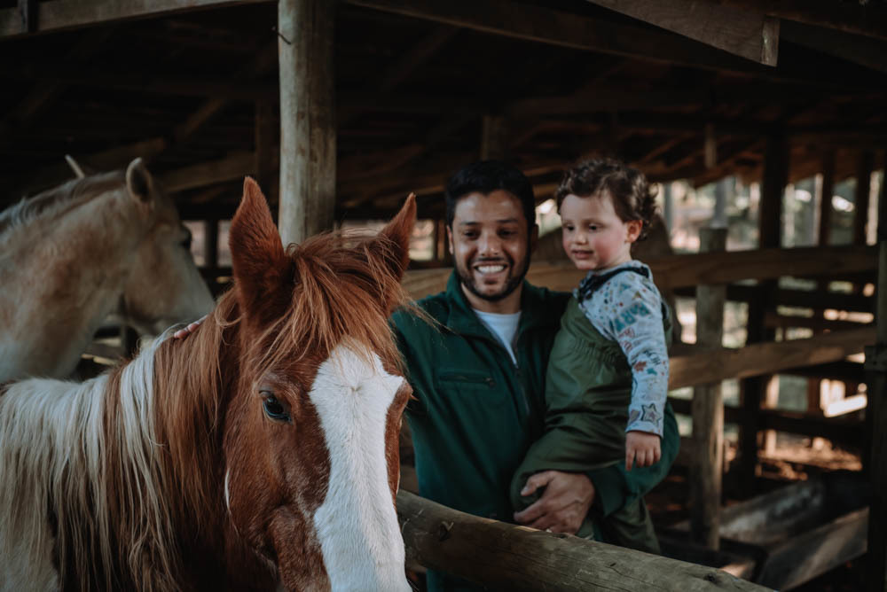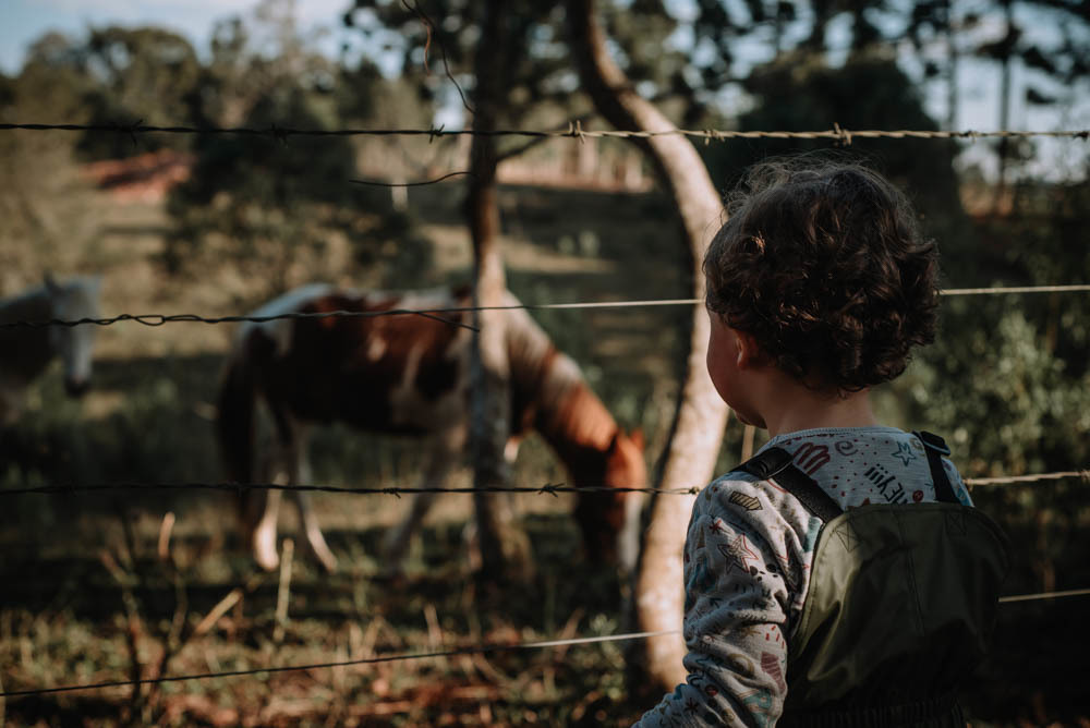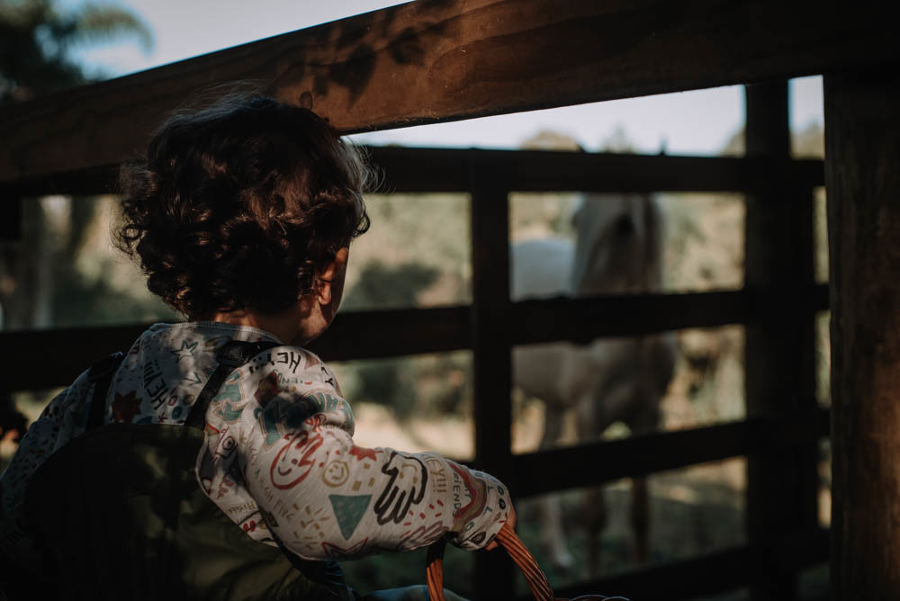 Ele pegou pinhão, limão, correu pelas estradinhas de chão, viu de pertinho os cavalos e comeu um super bolo!!!