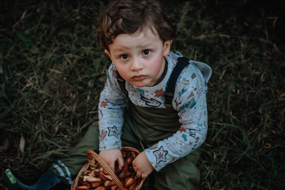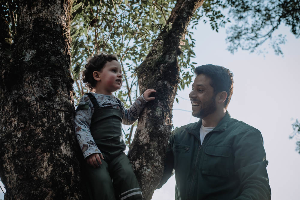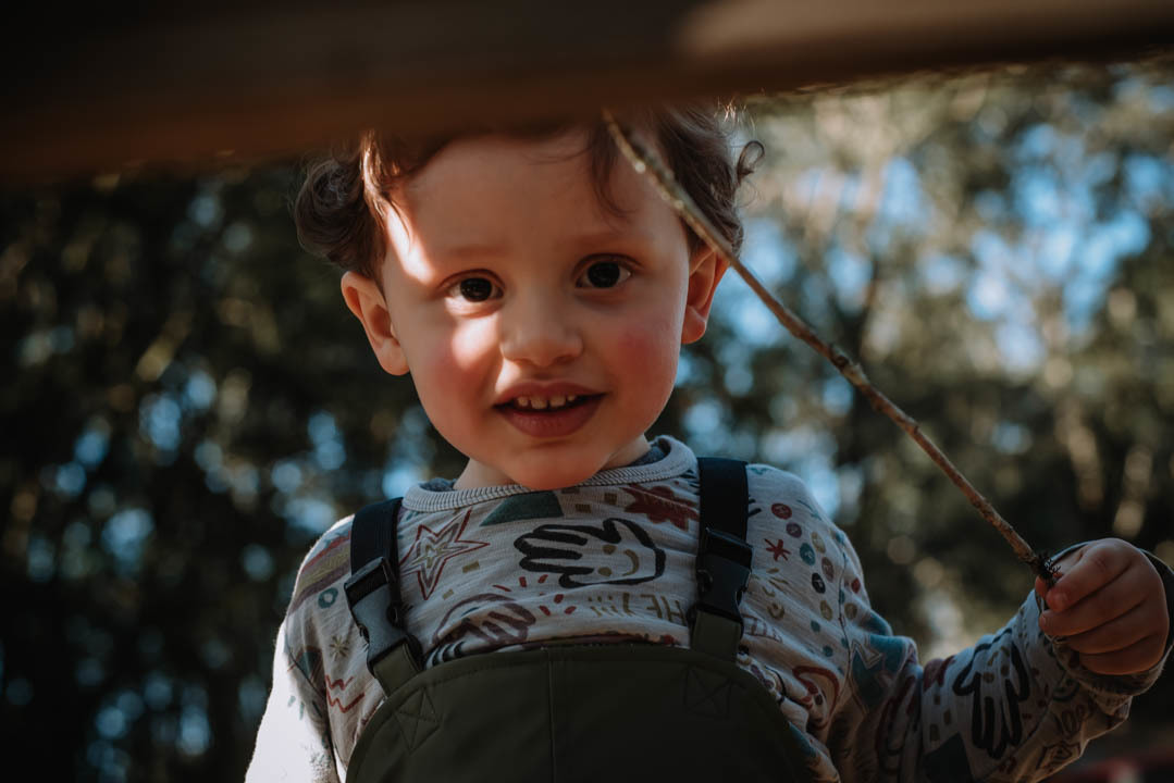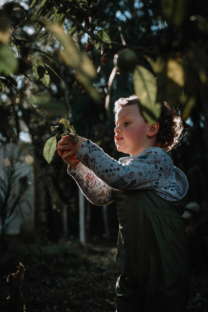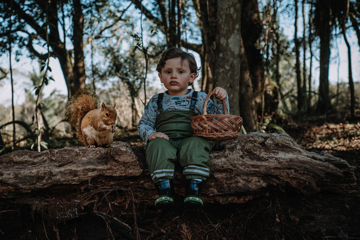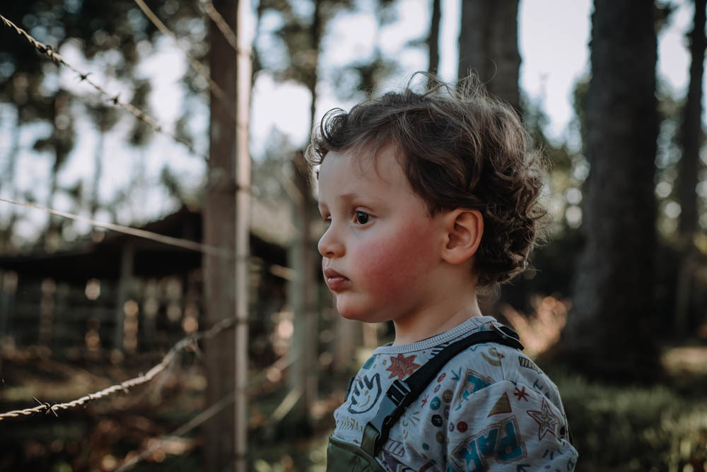 Ele pegou pinhão, limão, correu pelas estradinhas de chão, viu de pertinho os cavalos e comeu um super bolo!!!