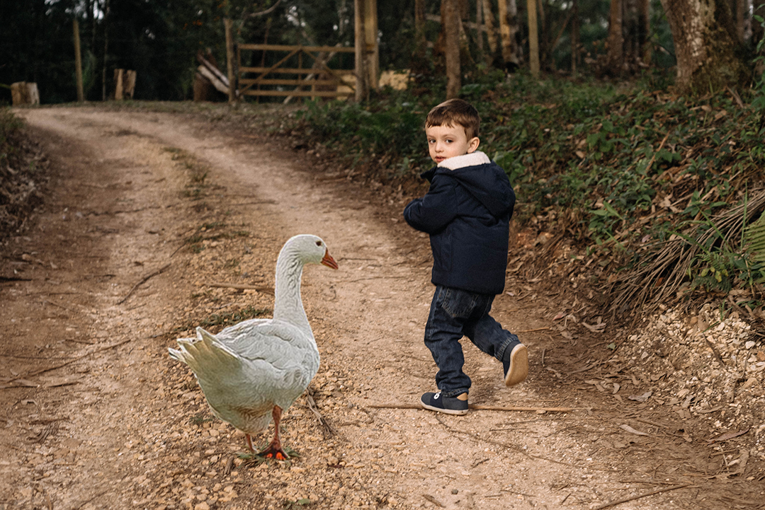 O Dani e o Davi eram só alegria em meio a natureza... o Dani queria ver o cavalo, galinha, os pequenos bichinhos que habitam os troncos caídos e claro pular na poça de lama.