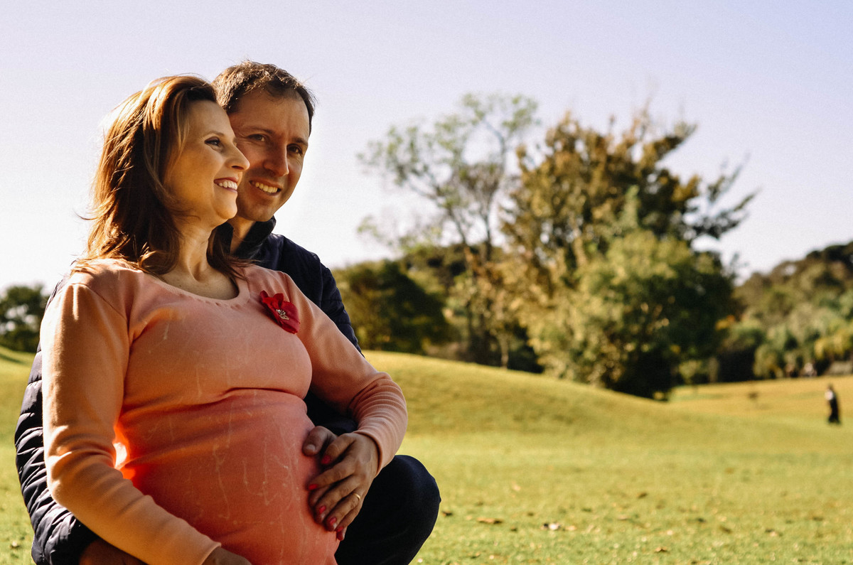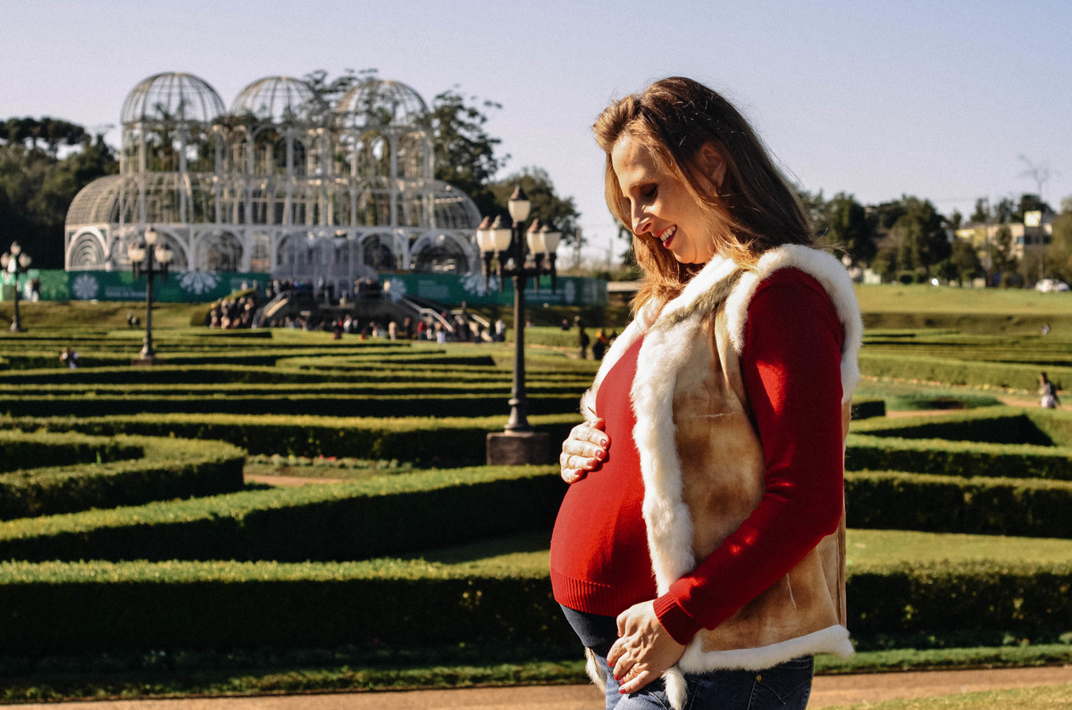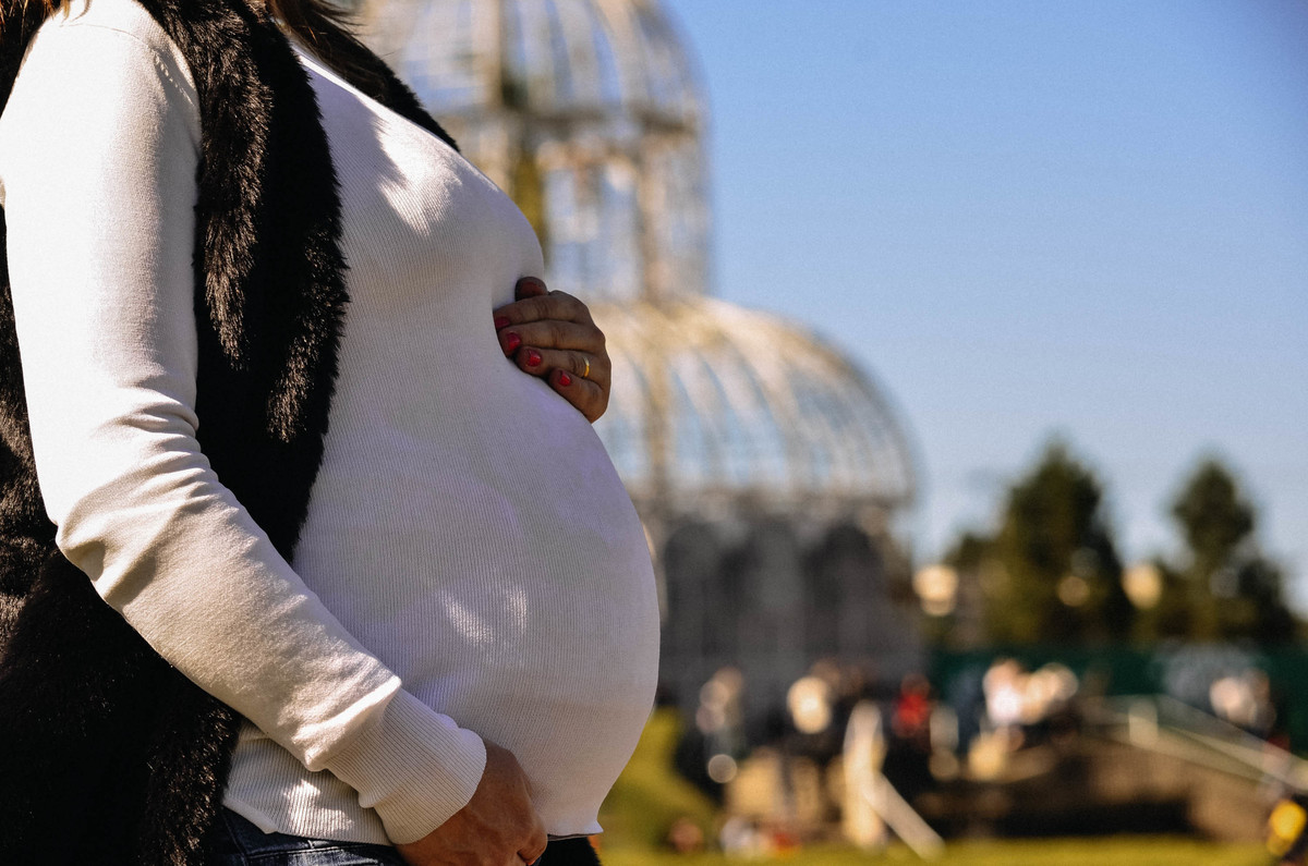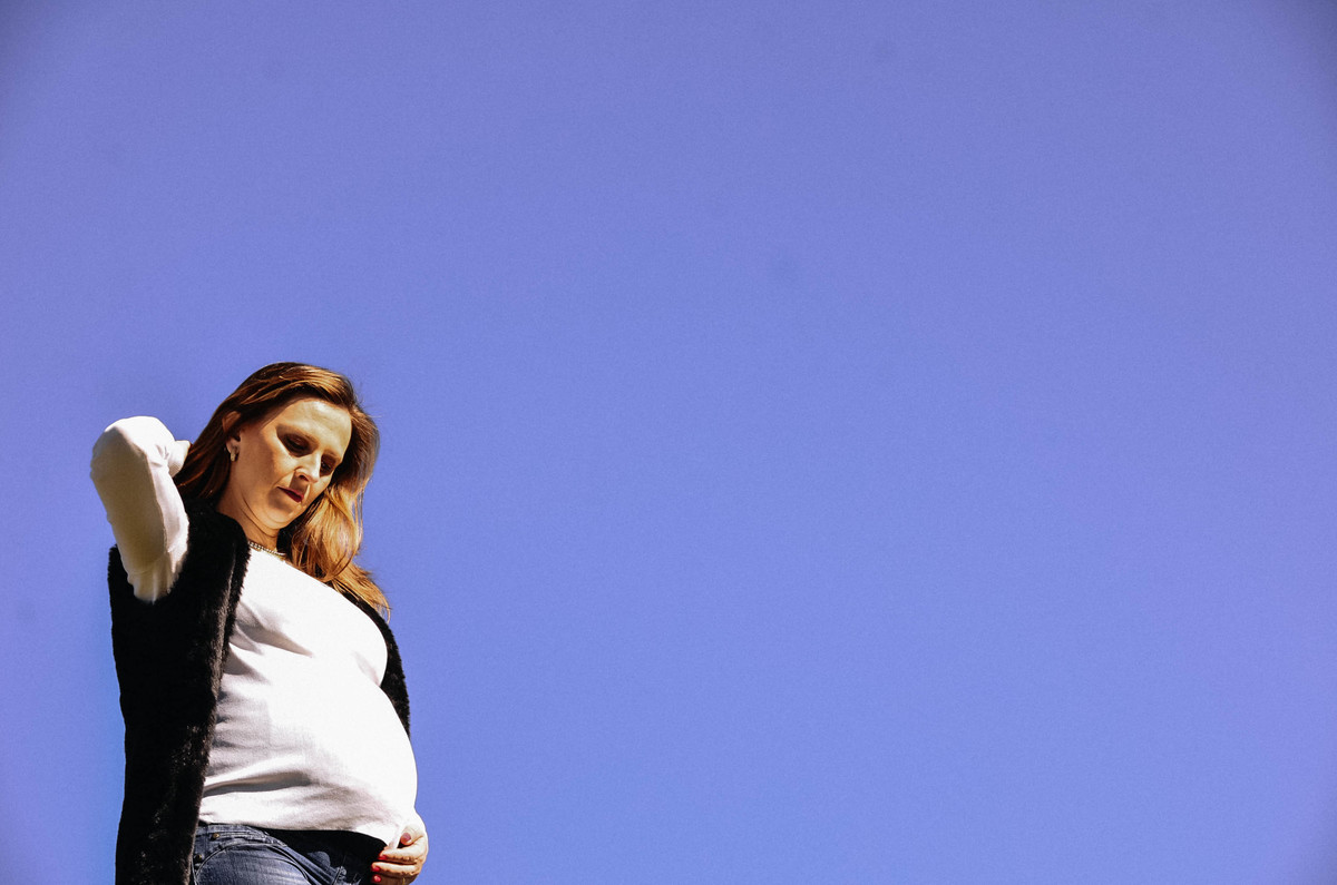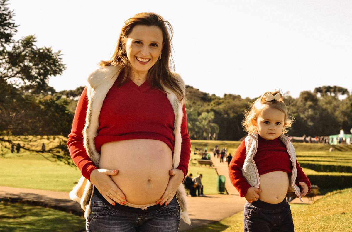 A Letícia é só amores com a barriga da mamãe.
