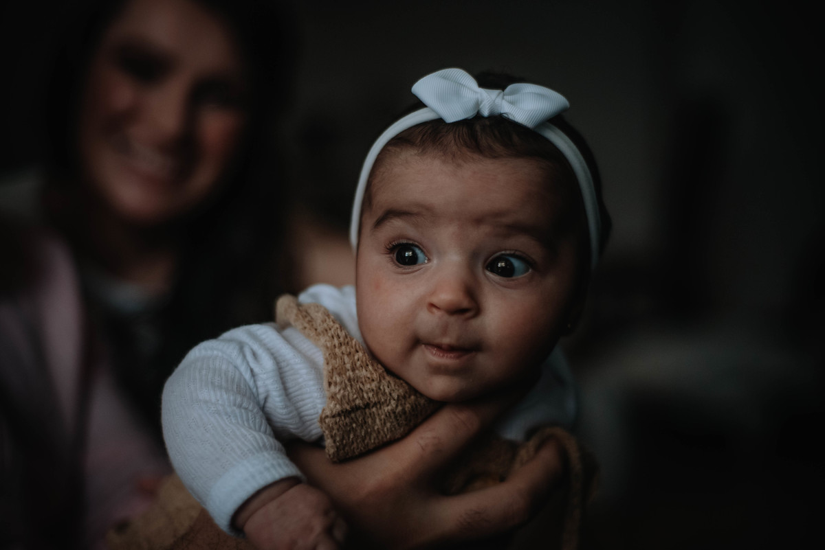 A Bel é doce, com traços fortes, olhos que parecem jabuticaba, uma bebê única e o ensaio foi lindo!